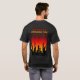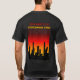 " Är vår gud att konsumera för A avfyrar…", Denna svart t-skjorta uthärdar dessa ord, och en avbilda av en stadshorisont silhouetted mot glödet av avfyrar med brinns glödar som att regna besegrar på staden.
