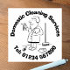 Roligtens domestic städning tecknaden i ett dam med städning utrustning. Anpassa den efter ditt val av företag, namn och kontaktnummer. Perfekt gummi frimärke för en domestic städning företag eller domestic städning verksamhet.