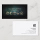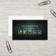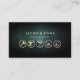 Det här affärskortet med städning yrkeskunniga har en turkos grunge struktur. Fem guld-ikoner för städning tjänst (verktyg, drivborrning, färgrullpensel, gräsmatta och dammsugare) visas på kortets nedre del, med namn och tagg eller text i fetstil på den övre halvan. Din kontaktinformation visas på baksidan av kortet. De små ikonerna skapar en mycket imponerande professionell.