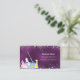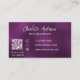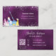 En elegant och ett glamoröst affärskort på lila, dekorerat med faux silver glitter damm på framsidan och städning utrustning. Lila färg är ojämn. Anpassa och lägg till ditt namn, kontaktinformation för text och din egen QR-kod till webbplatsen adress.