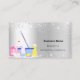 En elegant och ett glamoröst affärskort på ett faux silver tittar bakgrund som dekorerats med faux glitter damm på framsidan och städning utrustning. Anpassa och lägg till ditt namn, kontaktinformation för text och din egen QR-kod till webbplatsen adress. Facebook- och Instagram-ikoner. Ta bort om du inte vill det.