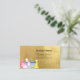En elegant och ett glamoröst affärskort på ett faux guld tittar bakgrund som dekorerats med städning utrustning. Anpassa och lägg till ditt namn, kontaktinformation för text och din egen QR-kod till webbplatsen adress.