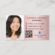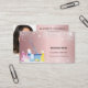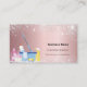 En elegant och ett glamoröst affärskort på en övertoningsbakgrund för rosa som dekoreras med faux glitter damm på framsidan och städning utrustning. Anpassa och lägg till foto, namn, kontaktinformation för text och din egen QR-kod till webbplatsen adress.