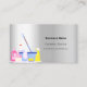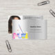 En elegant och ett glamoröst affärskort på ett faux silver tittar bakgrund som dekorerats med städning utrustning. Anpassa och lägg till foto, namn, kontaktinformation för text och din egen QR-kod till webbplatsen adress.