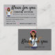 Professionell affärskort med bild i städning dam med brunt ljus hudfärg med brunt hår och brunt öga i en vit t-shirt och jeans med städning tillbehör till verktyg och rosa. Det finns gott om utrymme för att redigera företagsinformation och skrivans slogans med mera. Gör ett eget affärskort för personligen.