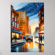 En sjudande stadsmålning, som kommer till liv med uttryckliga vattenfärger, skildrar en färgstark vinterscen i London. Snö släcker gatorna, och glöden på natten belyser ljus den ikoniska Big Ben och andra stora byggnad. En bil går förbi och lämnar spår i snö när den går genom det charmerande landskapet. I den här teckningen fångas en vinter-natt i London, där tittarna bjuds in att slå sig ned i den urbana atmosfären och den unika skönheten i stadens landmärken i snöbacken. Konsmålning för din hemdekanter. Du kan köpa med ram och skriva ut pappert. Ursprunglig filbild storlek: 300 dpi (25 x 34 tum).