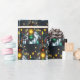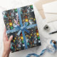 En närbild av en trafiksignal med alla tre röda, orangefärgade och gröna belysta mot dimmig cityscape nattetid