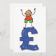 En skiss över en person som står på pundssymbolen. Den här designen ser ut att vara verkligen i den här inbjudan