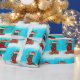 Staffdshire-borrskräcken som njuter i snö med julklappar med jultomten hatt och med christmas ljus är en perfekt-gåva för någon som kärlek i hund aveln i