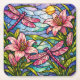 Stain Glass Lilies and Dragonflies Pink Underlägg Papper Kvadrat