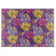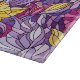 A beautiful abstract floral stained glass style pattern decorates this fun retro 60s vibe cutting board. Generated with AI by IveyCottage.