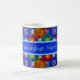 A beautiful abstract floral stained glass style pattern decorates this coffee mug. Text can be changed. Generated with AI by IveyCottage.