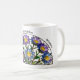 Celebrate September with this Aster stained glass-inspired mug. Purple and blue asters form a luminous circular design. Not real stained glass, printed on ceramic. Personalize with name and flower meaning (“Wisdom”) for birthdays or special gifts.
