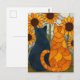 Stained Glass Cats and Sunflowers Art Design Vykort