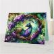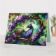 An enchanting peacock rests within a circular wreath of blooming florals and woven branches, rendered in a luminous stained glass style. Jewel-toned blues, greens, violets, and soft golds flow through layered feathers, creating a sense of graceful movement and quiet wonder. The mosaic-inspired background adds depth and softness, blending organic shapes and gentle color transitions that feel both folk-inspired and whimsical. Delicate blossoms frame the composition, lending a romantic cottagecore mood with subtle boho charm. The overall aesthetic is serene yet vibrant, balancing intricate detail with a soothing, storybook atmosphere that celebrates nature, beauty, and quiet elegance. AI generated artwork.