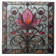 Stained Glass Red Pink Flower Kakelplatta