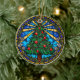 This beautiful round ceramic ornament features a classic Christmas Tree, richly adorned with red baubles and garlands, all rendered in a brilliant stained glass style. The tree is framed by a gorgeous, intricate wreath border of lilies, greenery, and berries, giving it a luxurious, heirloom quality. The background includes a dramatic blue starburst sky with snowflakes. This unique piece is a sophisticated Christmas keepsake and makes an exceptional holiday gift for collectors or anyone who loves traditional artistry and festive elegance.