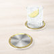 Enkel och elegant underlägg. Trätfritt stål med guld-trim. Design är all bild som skrivs ut på sandsten kusten. Inte äkta eller imiterad metall