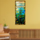 Ett nedfläckad av stjärnfisk under art nouveau, ett fönster av under havet vid tiffany. I färg av blått, teal, guld och brunt. En vintage för elegant.