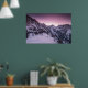 Att stå på vintern under vintern efter solnedgången en vinterdag kall med berg täckta av snö.