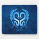 Ljusa två - vänder mot stam- drakar för blått varje annan i denna aggressiva symmetriska design. De subtila viktina på ytan av de bevingada ormarna ger designen en look för en klockas slag 3D. Nedgångar för en skugga bak de tvilling- drakarna skapar precis dem för att verka att flyta precis ovanför den djupblå bakgrunden. Den stora vingar sträcker ut på antingen sida som inramar beautifully designen. Detta bedöva mönster gör en stilfull mousepad.
