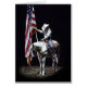 Ett fantastiskt foto av cowgirl på en palomino & white Paint Horse som höll den amerikanska Flagga under nationalhymnen vid Ormön Stampede 2014.