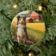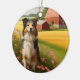 Standard Collie på gård med lada och blommor. Arbetande vallande gårdshundar. Lägg till denna bild på andra produkter. Lägg till din egen text också. Ändra bakgrundsfärg.