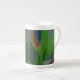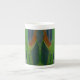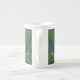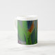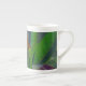 Med föreställningen om en tropisk struktur är MaeFlowers originalfoto på denna Bone China Mugg en stängning av grönt löv med linjär detaljrikedom och fint kurvor. En del av löven lyser på ett sätt som tillför rost och lila. Bakgrunden till fotot är en oskärpa av mjuka gröntar.