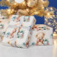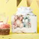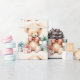 Svällning papper med en söt illustration med en Victorian stil-nalle. Med en röd finare-båge. Ritad i en söt, gammaldags vintage stil. Röd och blå pastel Julklapp omger denna varma björn.