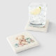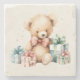 En sten underlägg med en söt illustration med en Victorian stil-nalle. Med en röd finare-båge. Ritad i en söt, gammaldags vintage stil. Röd och blå pastel Julklapp omger denna varma björn.