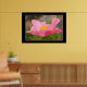 Färg galore för att göra ett rum ljusare! Den skrynklade kräpen papprare struktur i de ömtåliga rosa vallmopetalerna verkar förfärlig. Petal linjer leder öga in i den centrala gult pollen som jackat härkomst från papavavallmo. Fotografiet är ramat av en bra rosa linje som gränsar till ett vitt svart ram. Nedan visas andra versioner av poster med samma rosa Papaver Poppy.