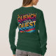 Den här t-shirt-designen har fet text med flera färgader "Quench Your Quest" med klara övertoningar och dynamisk formatering. Det ljusa färger frammanar en känsla av äventyr och energi, skapar utformningen av både öga och motivationen. Den rena, minimala bakgrunden ser till att fokus ligger kvar på det kraftfulla budskapet, perfekten för alla som utnyttjar sin utforsknings- och självupptäcktsfärd.