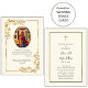 Stunnande scrollsar i guld ram en ortodoxt kristen ikon av Joachim och Anna i detta bönekort för bröllop. Anpassa med all din personliga information och dina inställningar, inklusive teckensnitt, storlekt, färg och placering. Kontakta oss om du har frågor. Observera: De flesta ikonerna är mycket gamla. Om bilden ökas mer än vi har kan bilden bli förvrängd. Vi skriver inte ut, tillverkar eller skickar inte ut någon av produkterna. Tack!