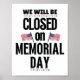 Memorial Day Poster, stängd på minnesdagen. Vi kommer att stängas på minnesdagen Poster för kontor, företag, personlig använda.