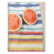 Stängfoto av vattenmelonfrukter i segment på trasa anteckningsbok