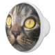 Utformningen har en fotografisk porträtt av en katt med utmärkande öga.