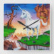 Fantasy Art magic Unicorn Kingdom. Magisk fantasiscen av en ädel enhörning som förbiser sitt kungadöme. Airbrush och vatten färg illustration. Se upp för andra underbara produkter som har denna ursprungliga utformning.