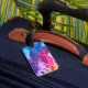 En abstrakt design imiterar stänk av färg i en mängd olika ljusa färger färger.