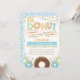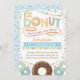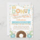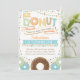 Nyckfull munk-/munktemafödelsedaginbjudan som presenterar illustrationen av smaskiga donuts och färgrika stänk