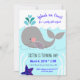 Nautisk havsval, födelsedagsfest. Justera texten så att den blir din egen. Hand plockade Cute, en berömvärd valbild. Ljust blått och vitt tema, den strimlade bakgrunden utgör den här söta inbjudan till födelsedagspartier. Första födelsedagen. Boy party. Ljusblått tema.