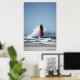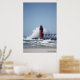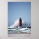 En stor våg kraschar över sydhaven, Michigan fyr.