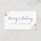 Gör ett underbart första intryck med denna yrkesmässiga men skämtsamma visitkort med färgrika hand plockadestänk i en regnbåge av rosor, lilor, blått, orangen och grönt. Perfekt för en bageri- eller individbagare av muffins, tårtor, kakor, bakelser eller andra confections.