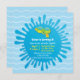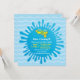 En födelsedagsfest med kulspetsar i vatten med en unik gourdformad vatten-pistol över ett övertoningsblått stänk och vågigt linjer mot bakgrund. Färg palett med gult, orange, grönt och blått. Anpassa enkelt dina party-detaljer i det utrymme som finns.