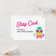 De här söta platta korten är väldigt mångsidiga för alla dina sommarbehov i marknadsföring - meddelandet på framsidan kan ändras till vilken bransch som helst och dina kontaktuppgifter finns på baksidan tillsammans med ditt personlig-meddelande och kan enkelt uppdateras! Ändra färg i "stanna coola" genom att anpassa dig ytterligare!