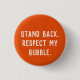 Med den här kommandoknappen uppmuntras människor att behålla sin avstånd. Den ljusa orangen färg kommer att framstå som en hjort jägare i skogen. Om du inte vill att folk ska andas på dig, är den här knappen ett måste ha medföljande! Den här knappen inspirerades av en nyligen gjord resa till butiken i livsmedel där bubblan INTE respekterades!