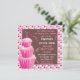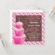 Gullig polkadotbakgrund med tre rosa frostade staplade muffins och stearinljuset välkomnar dina gäster till denna 1st födelsedagsfest. Underbar för triplets på deras första födelsedag eller precis ett barn. Hand plockadeillustration av McBooboo. Behovsfärgändringar? Inget problem, kontaktar precis mig!