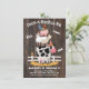 Boskap Födelsedagsfest inbjudan. En skorsten av söt boskap: chicken gris, ko, får, tupp, get och baby på en mörk lada med träbakgrund. Underbar för en andra födelsedag, men alla åldrar kommer att fungera. Underbar för en pojke eller flicka. Perfekt för en Petting Zoo party.