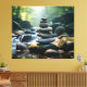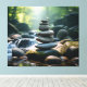 Staplade staplar Canvas visar en stillastående scen för balanserat sten i en flytande vatten-inställning. Konsten förmedlar en känsla av harmoni och stabilitet och fångar naturens skönhet och balans.