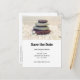 Spara datumet vykort med ett fotografi som visar stenstaplar ovanpå varandra. Omgiven av lösa vita stenar och små vita blommor.