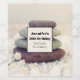 Flaska-etiketter på födelsedagen eller andra evenemang med fotografi som visar att sten staplar ovanpå varandra. Omgiven av lös vit sten och små vita blommor.